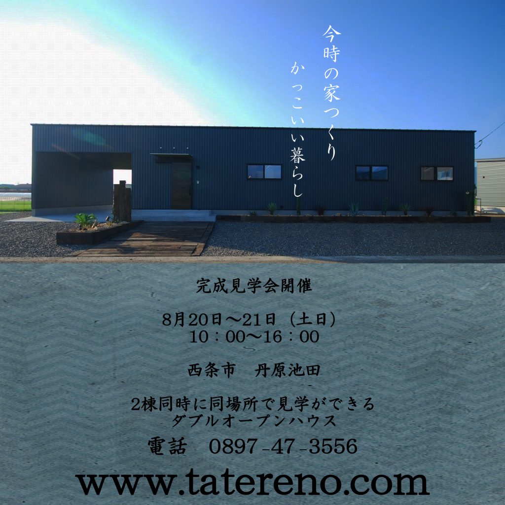 今日からダブル見学会第2弾! 西条市丹原 ガレージのある家つくり平家&2階建!